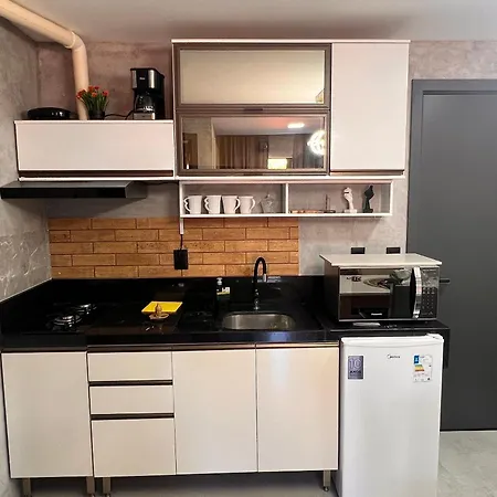 Apartamento Residencial Praça 5 - Ap. 104 está equipado com cozinha equipada incluindo refrigerador e utensílios de cozinha, para garantir o seu conforto.